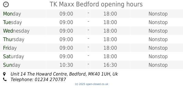 It is also possible to : Edit these OPENING HOURS of Store TK Maxx In Bedford, Unit 14 The Howard Centre,